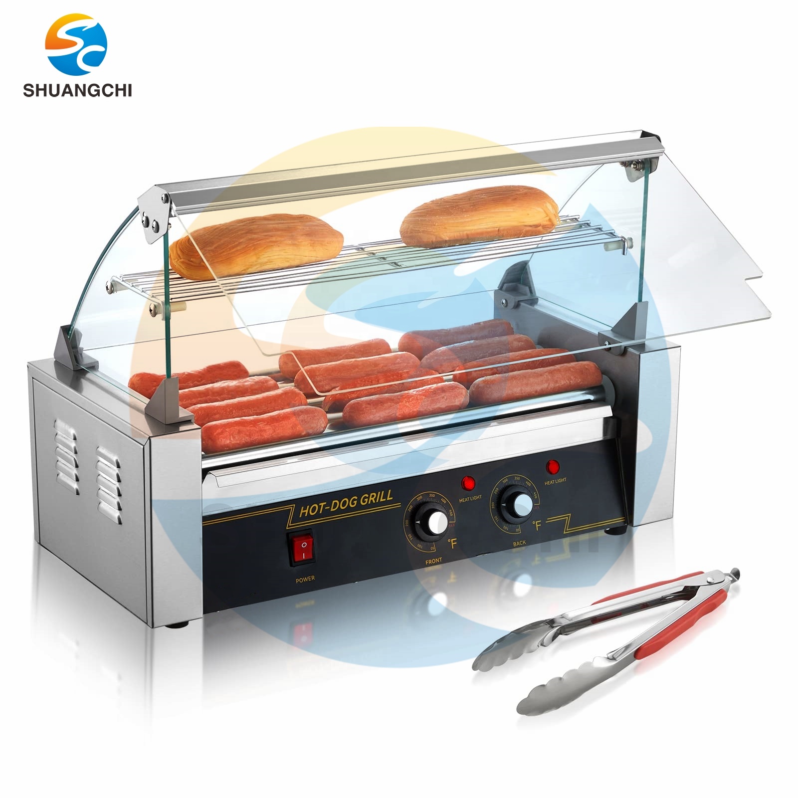เครื่องทำไส้กรอกไฟฟ้าลูกกลิ้งสุนัขร้อน5ม้วนเครื่องทำขนมปังอุตสาหกรรมพร้อมประตูพร้อมตะแกรง